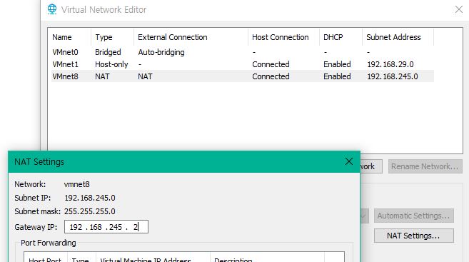 VMnet8 선택 -> NAT setting -> Gateway IP 확인