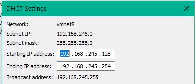 VMnet8 선택 -> DHCP 세팅