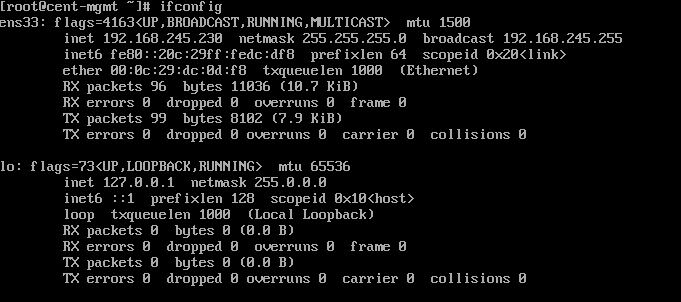 systemctl restart network로 네트워크를 다시 시작하고 ifconfig로 할당을 확인한다.